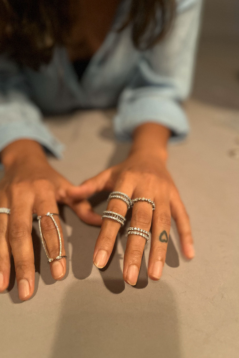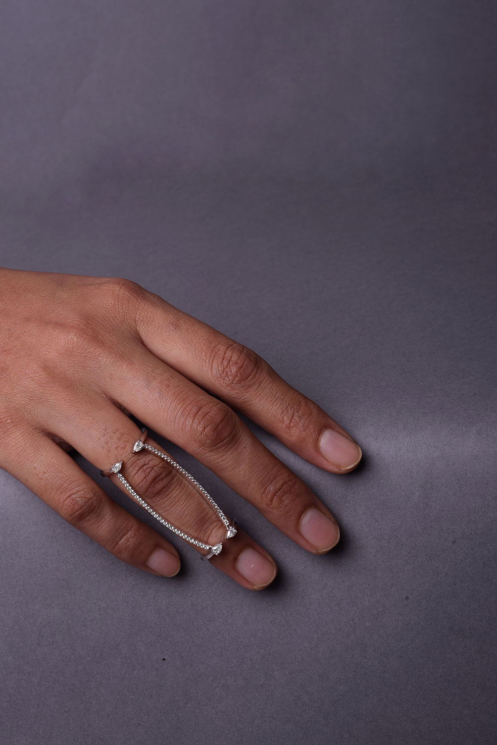 “Deja vu" is a ring that exudes timeless elegance and sophistication with a unique twist. Its elongated shape creates a sense of continuity, as if the diamonds encircling it represent a continuous stream of sparkling moments.