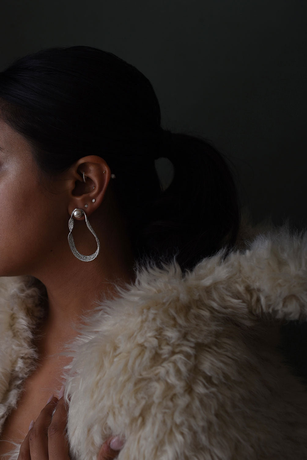“Moondrop” a refined and graceful earring masterpiece that seamlessly marries the timeless allure of pearls with the brilliance of diamonds.