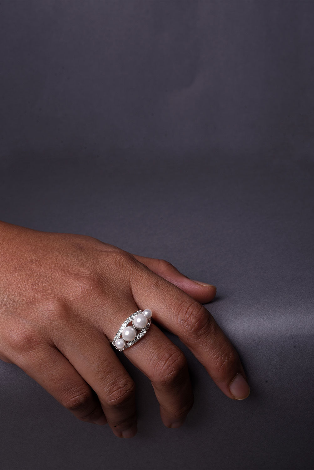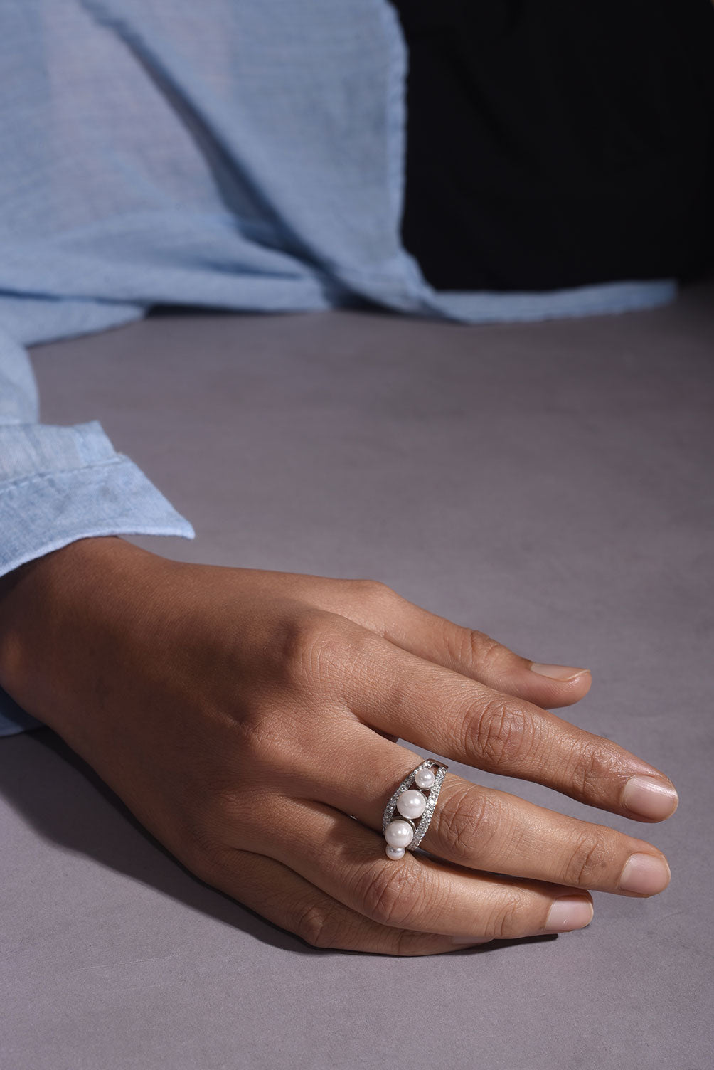 “Mystical," a captivating ring that harmoniously combines the dazzling brilliance of diamonds with the timeless elegance of pearls.